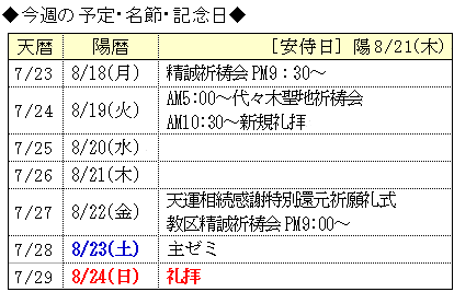 陽暦8月17月の礼拝